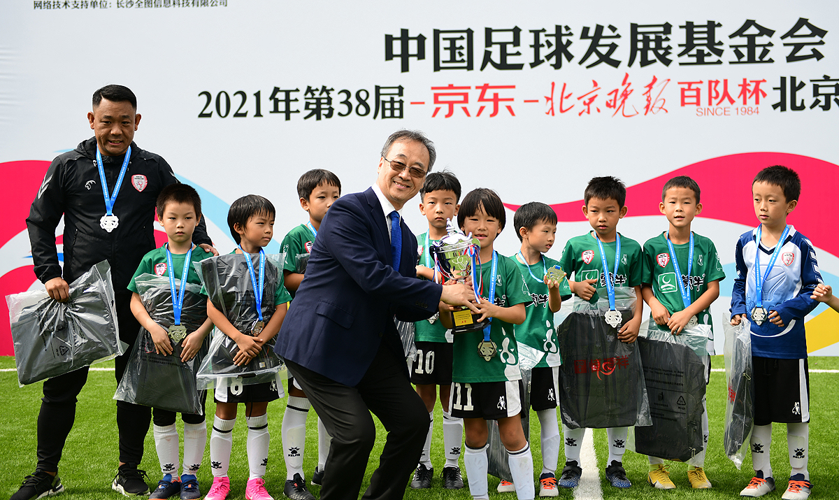 9月25日,中国足球发展基金会2021年第38届百队杯北京赛区五人制足球赛U7、U8、U10三个组别决赛颁奖仪式在丰台体育中心举行。经过6个比赛日的激烈角逐,第38届百队杯五人制比赛正式落下帷幕。在当天的三个组别决赛中,爱踢客14A队获得U7组别冠军、北京梦之队获得U8组别冠军、经开区体协队获得U10组别冠军。