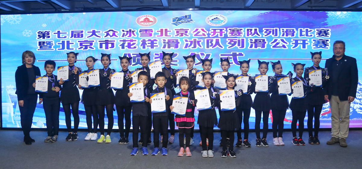 开幕仪式后,第七届大众冰雪北京公开赛花样滑冰队列滑比赛正式开赛。花样滑冰队列滑项目是一个新兴的冰上集体项目,1956年创始于美国密歇根大学的冰球赛场上,作为比赛间歇的表演,现在已经成为国际滑联正式的比赛项目。队列滑重点表现的是整体动作和队列的变换,突出表现力和协调一致性。队列滑对个人的花样滑冰技术难度要求相对较低,参与门槛低,且不分性别,特别适合大众开展。青少年阶段的年龄跨度也较大,尤其适合在中小学校开展。孩子们在训练中既能掌握花样滑冰的个人技术,又能体验集体项目的协同配合、互帮互助,和同伴们在一起滑冰,充满了快乐。近年来,随着冰上运动的发展,北京打造花样滑冰队列滑品牌赛事的需求日益突显,本次比赛的举办将成为此项运动创立品牌赛事的一次有力尝试。