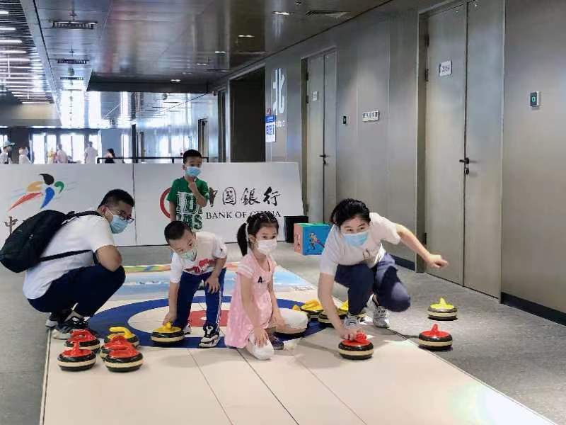 7月16日,北京冬奥会场馆首都体育馆迎来首个开放日,近千名市民前来参观,并参加冠军公开课和大众专场体验活动。在北大厅,中国银行·中国冰雪大篷车携带冰雪知识大讲堂和越野滑雪、旱地冰壶、冬季两项模拟射击等多项旱地化冰雪运动体验项目为市民在夏日里送上一场冰雪盛宴。