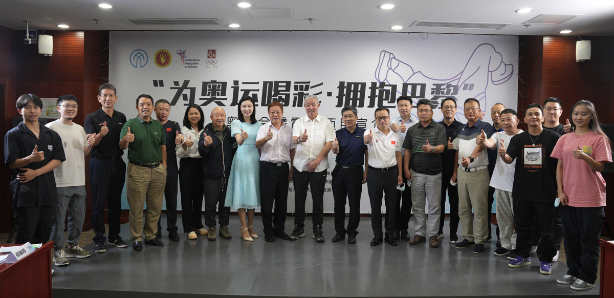 7月26日,为奥运喝彩组委会在北京恒源祥大厦举办了“为奥运喝彩-拥抱巴黎”奥运会霹雳舞项目宣介会。国际奥委会委员于再清,亚洲体育舞蹈联合会副主席、中国体育舞蹈联合会秘书长苏洁,中国国家画院博士后导师、为奥运喝彩艺术总顾问范扬等嘉宾以及著名霹雳舞选手、多家知名企业代表莅会,就“拥抱巴黎”奥运会霹雳舞项目进行宣介和交流。