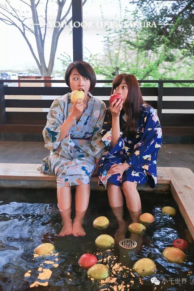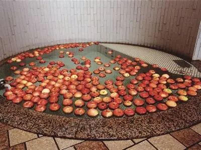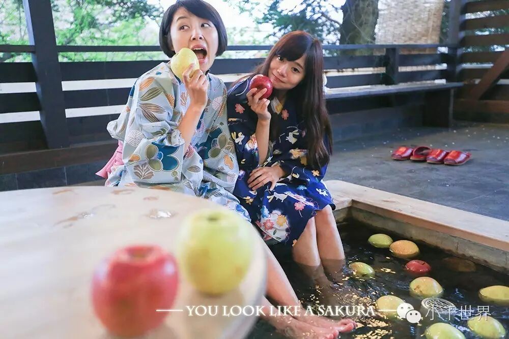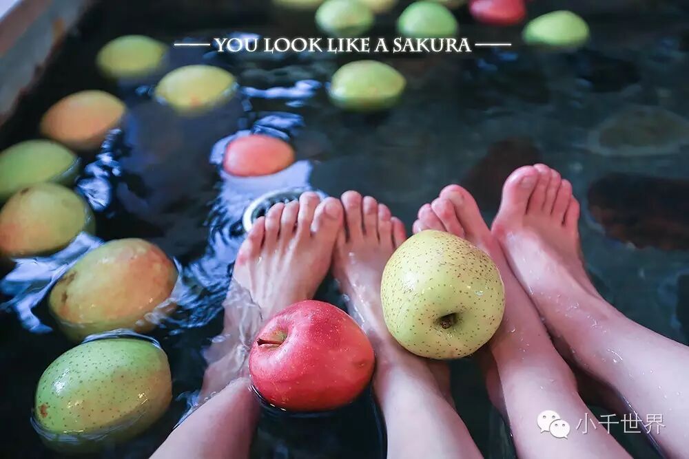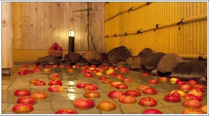 在这里,你可以完完全全浸泡在满满都是苹果的温泉池里。