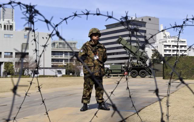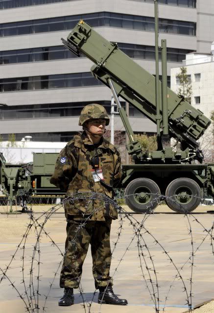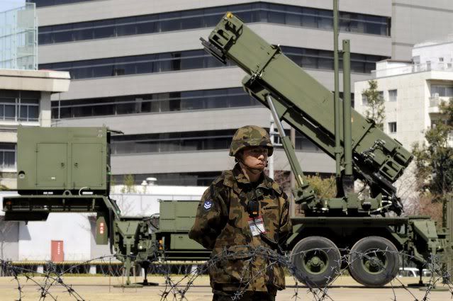 2009年3月29日,日本航空自卫队在位于东京市中心的国防部总部 破天荒的部署爱国者3 ( PAC - 3型),以拦截朝鲜导弹.看来朝鲜是真厉害啊,中国解放军都没有能力令日本如此恐慌.