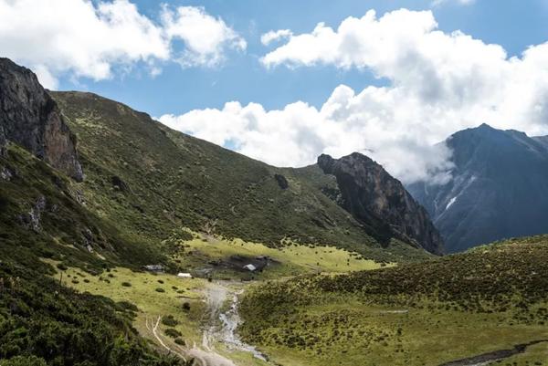 D3:菩萨洞—满措牛场—绕夏洛多吉—藏别牛场(呷日牛场)—杂巴拉垭口下方营地,徒步8小时,营地海拔4600米