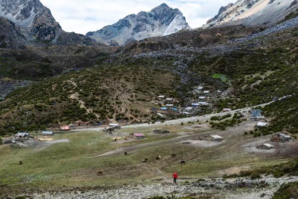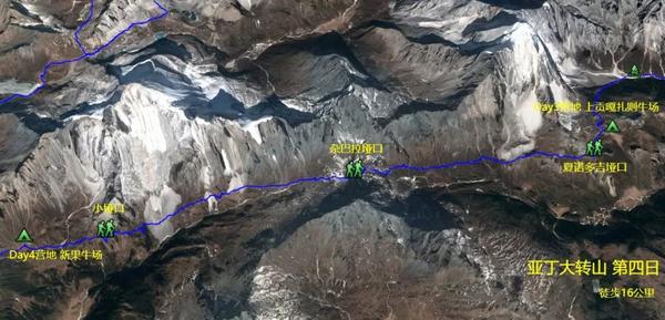 徒步16公里,海拔上升720米,下降840米;新果牛场海拔4280米。本日在杂巴拉垭口前与洛克线徒步队伍汇合。