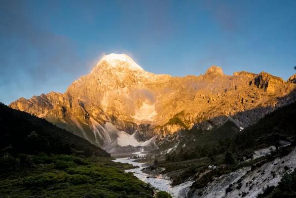 https://pic2.zhimg.com/v2-5ba2d673ba9edcbd7cc884f7e4135095_b.jpg扎则牛场,日出的阳光照在夏诺多吉上。