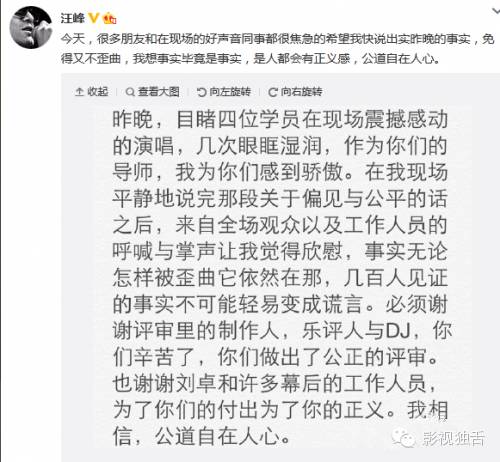 于是一切都好理解了。为了留住被“世俗偏见”所伤的半壁老师,只能更动游戏规则了。如果按照既有赛制,仍然是媒体评审占重要话语权,半壁老师的弟子真的有可能无缘决赛啊。首先,完全正常的评审就可能出现如此结果;其次,上周的事件之后,如果你还要求媒体心平气和、心律不变、心静如水地打分,那也是违反人性的。当针对性的侮辱发生时,正常人的反应都是回击,而不是打完左脸给右脸。
