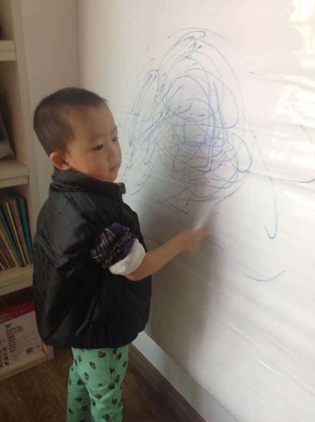 一天晚上威威莫名其妙闹了好几次,我也失去耐心了,跟威威说:“我现在很生气,我不想对你发脾气,所以我要把自己的情绪画出来。”然后我在纸上使劲画来发泄自己的愤怒和不满,画着画着,感觉自己平静了很多,耐心也渐渐回来了。