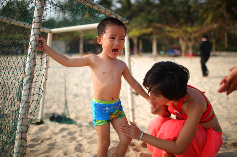 晚上睡觉时,威威的一个要求被妈妈拒绝了,他突然很生气,开始大哭,还伸手打了我。