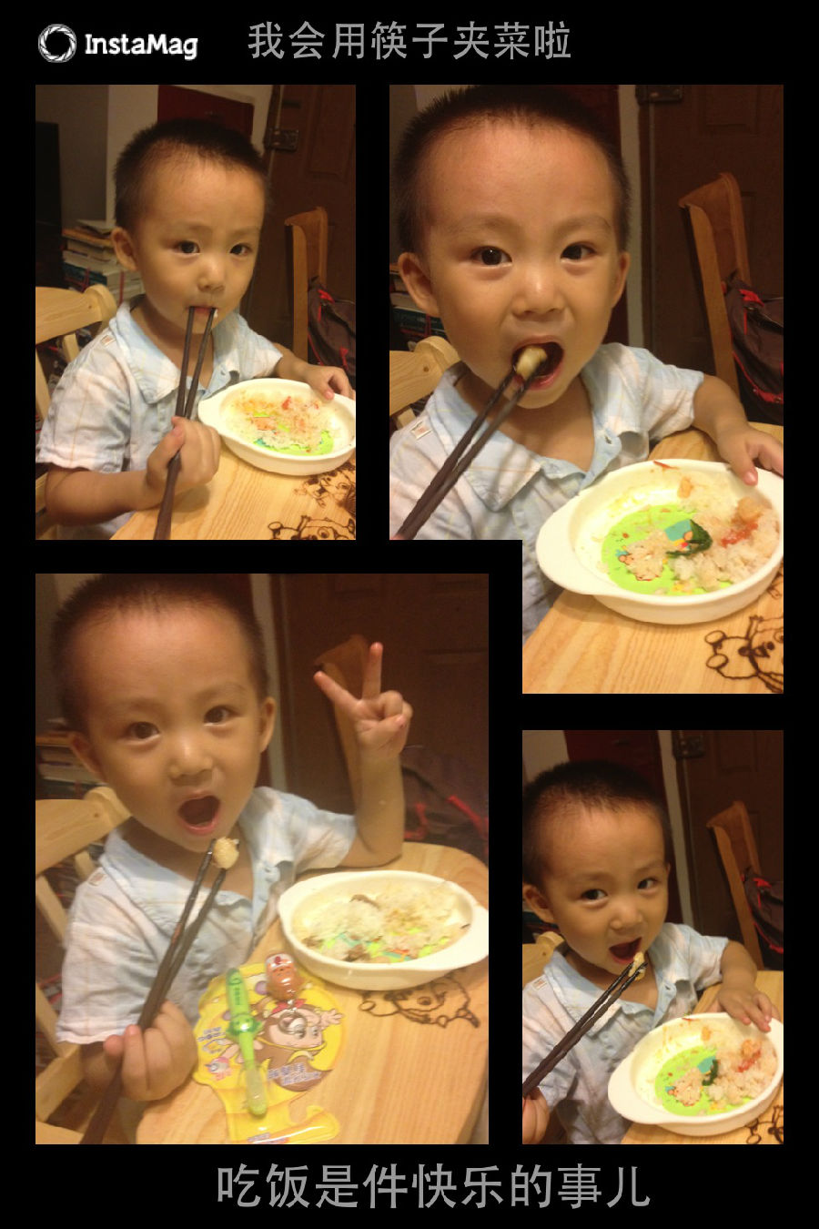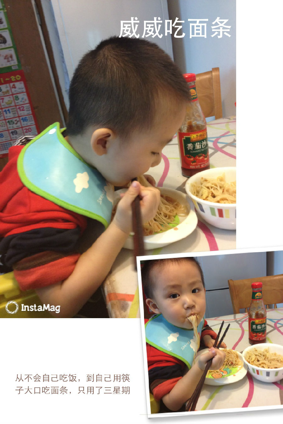 回到深圳三个星期的时间,威威不仅不需要我喂了,还可以自己使用筷子,吃完一大碗面条,有时一顿饭吃的比我还多!以前挑食,所有的青菜剁的再碎,他都会一点一星的挑出来,扔在桌子上不吃,现在可以大口大口吃整棵的上海青,几乎什么菜都吃。两岁八个月上小班,老师第一天就告诉我,威威是小班的小朋友吃饭最好的那个,不仅吃的最快,而且从来都不剩饭,吃完饭还能喝完一碗汤,老师从来都没有因为威威吃饭而发过愁。