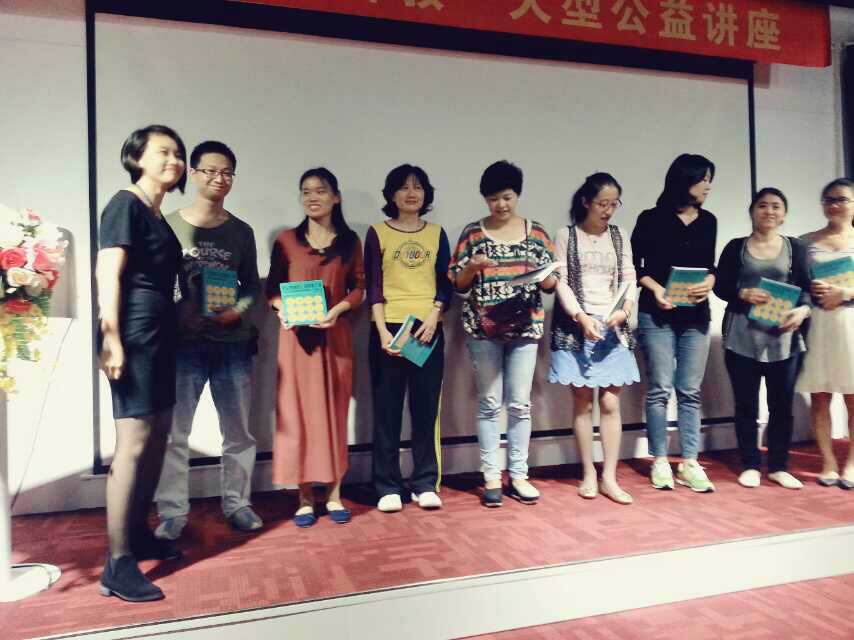 感谢慧宁和碧银两位引导志愿者,不仅早早来到了现场,并且不断的从后门将家长们引导到讲座场地。