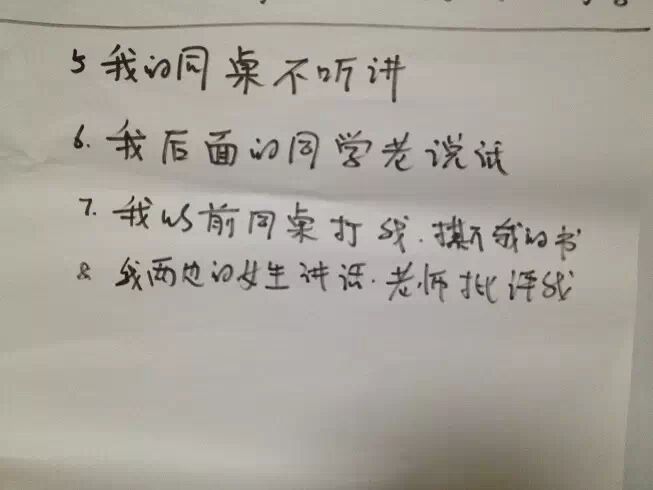 当家长、老师们还在纠结担心家庭会议和班级会议“万一解决不了问题怎么办?”、“要是他们不听我的怎么办?”、“要是他们的方法和我的不一样怎么办?”时,孩子给我们做出了最身体力行的表率:本周一的班级会议从开始致谢、到回顾上周结果(每个人带零食来分享)、到进去本周议题、到最后“欢乐时光”结束,一共25分钟,解决了四个议题!1 我的同桌不听讲,2 我后面的同学老说话,3 我以前同桌打我还撕我的书,4 我两边的女生说话,可老师批评我。
