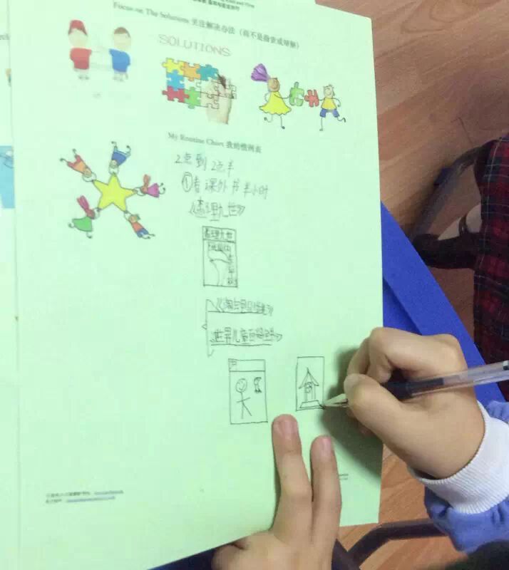 因为不需要找到解决方法,所以听的孩子和说的孩子都非常放松。大家畅所欲言后,孩子们的头脑倒更清楚了!那个“以前同桌打我、撕我书”的小姑娘说:“以后我再发作业走到他旁边时,我就不跟他说话,把作业发给他,然后赶快走开,另外也把我自己的书放好。”