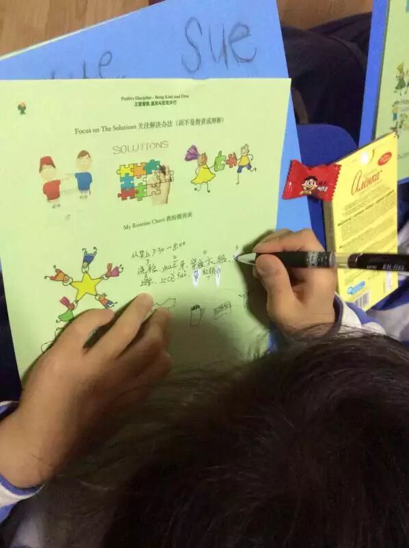 Elly“正面管教”在学校的第二次本土实验课,孩子老师们收获多多。Alvin不像上次那样嬉笑捣蛋了,不知不觉从“查理”的认知过程中学到了尊重;Emily大胆的在“虫子和魔法棒”的体验中说出,爸爸妈妈你们对我大吵大嚷时,让我有点烦,要是你们态度能好点就好了;Richard面对一个不受欢迎的同学,也可以给他以鼓励并告诉他:我愿意和你做朋友。