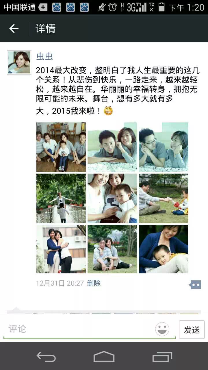 1、2014最大改变,整明白了我人生最重要的这几个关系!从悲伤到快乐,一路走来,越来越轻松,越来越自在。华丽丽的幸福转身,拥抱无限可能的未来。舞台,想有多大就有多大,2015我来啦!