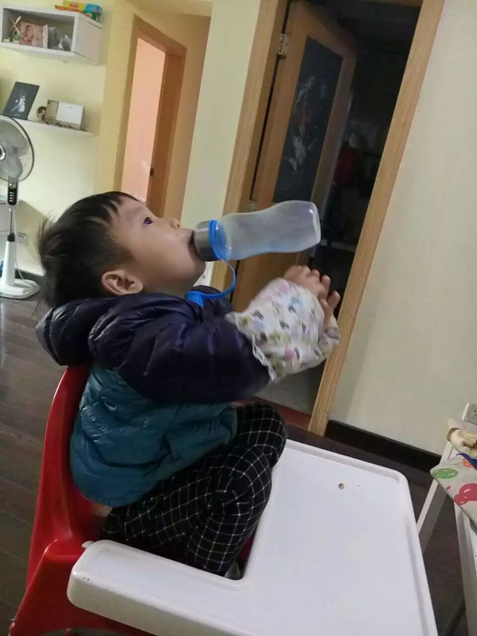 最后, 我一边收拾一边和他聊天:“仔,你自己想了这么多喝奶的有趣的办法,让我也觉得很有趣呢,后来看你用手背认真扶着奶瓶,真说话算数!”