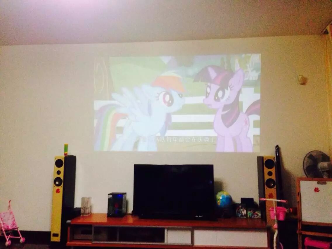 一台手机大小微型投影仪瞬间把客厅变成了影院,孩子们开心坏了!泡泡说这是“小崔电影院”,她负责卖票、检票和安排座位。