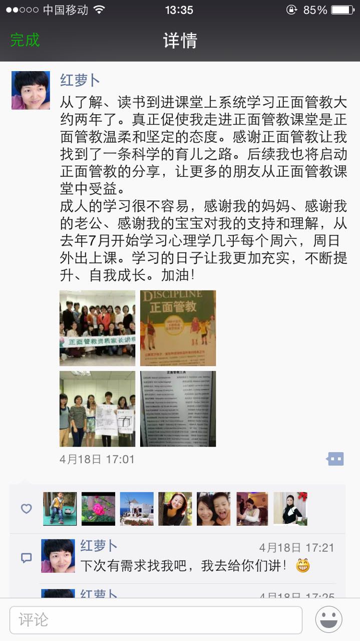 这期的4月家长讲师班,是比较难得的每周一次班。还有更多的人,希望有这样一周一次的讲师班。