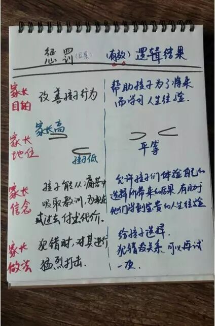 其实对逻辑后果最了解是我们自己,我们从小到大每天都在承担逻辑后果‘比如在学校没有做作业,要跑圈,罚抄作业,罚站是因为没有做作业