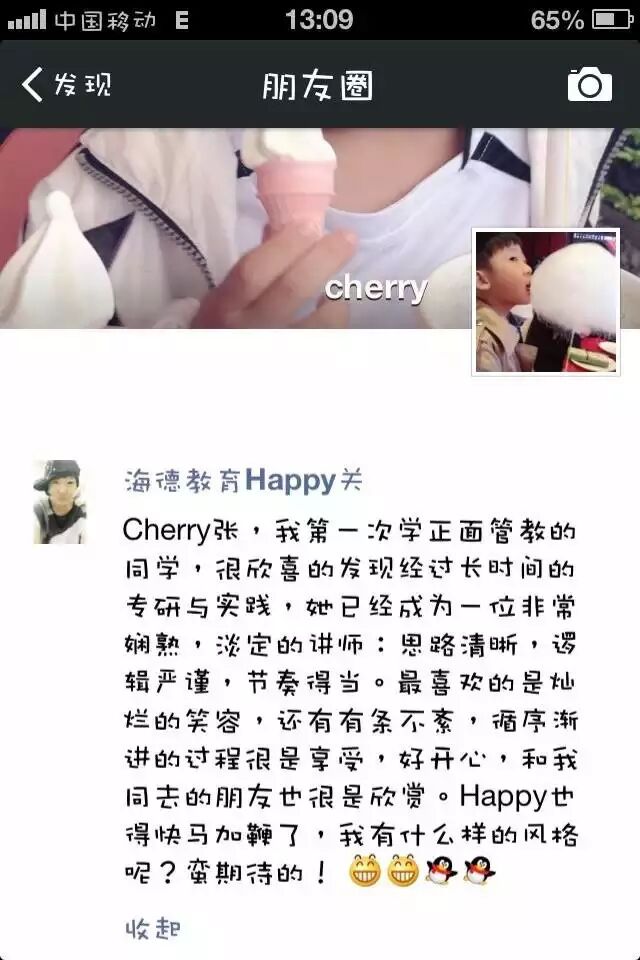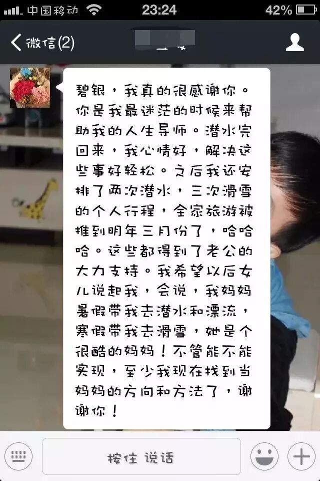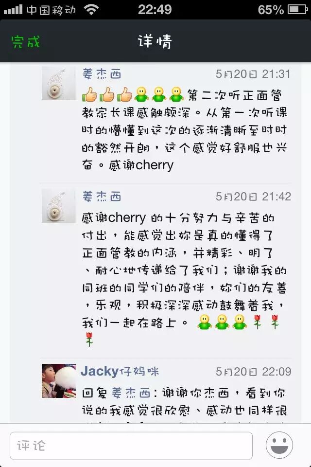 儿子说:“一开始让妈妈来上课,妈妈认为我是担心她照顾不好即将出生的孙子。但她还是来上课了。那么投入认真。看到妈妈微妙的改变,我真的很感动!感谢正面管教让我们一家变得更融洽!