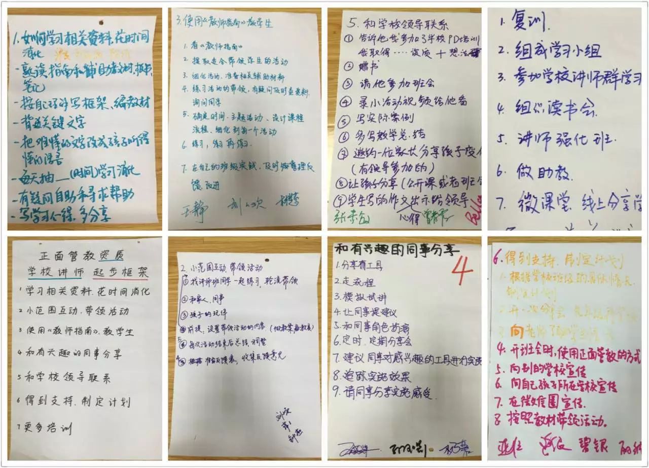 学校讲师班和家长讲师班,三天培训的内容有95%都不一样。其中,家长讲师班的内容全部来自于《正面管教家长讲师指南》(俗称大蓝本)。学校讲师班三天培训内容来自于学校讲师教材(两本,一本为面向学生的活动,一本为面向老师及领导的活动)。
