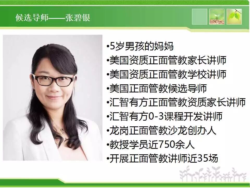 (5) 完成“汇智有方”家长班两个阶段并符合报名条件的学员,报名资质讲师班时优先考虑。