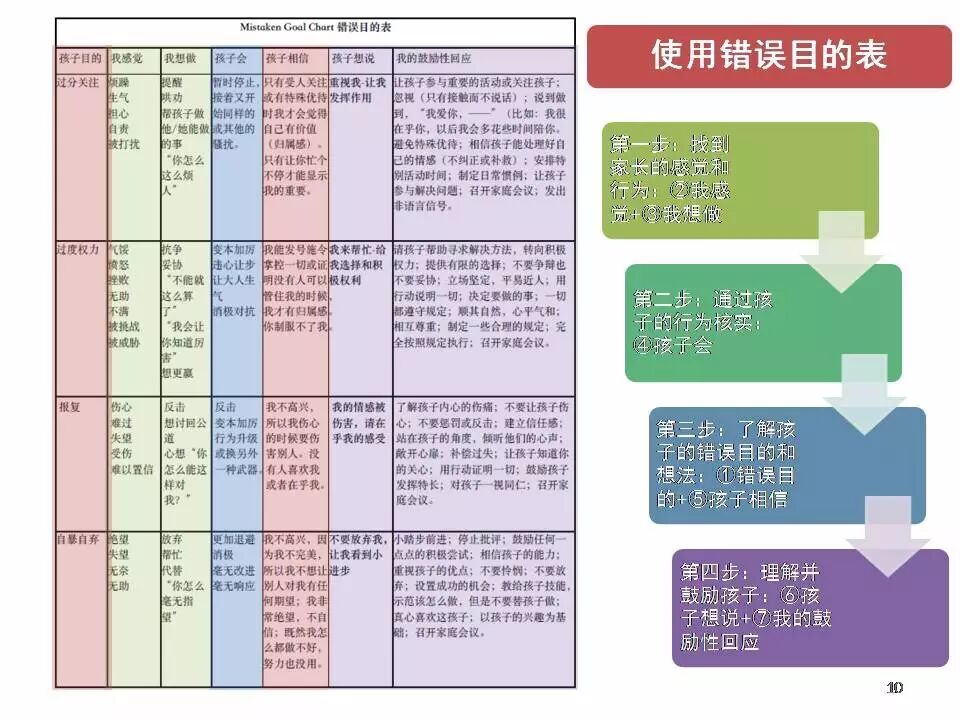 【错误目的表】是3-12岁家长基础班中第六次课会学习的工具。有不当行为的孩子,常常是最需要鼓励和爱的孩子。