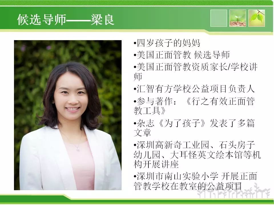 (5) 完成“汇智有方”家长班两个阶段并符合报名条件的学员,报名资质讲师班时优先考虑。