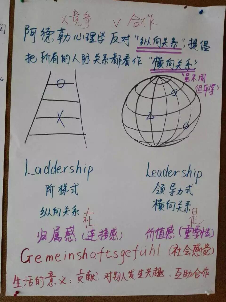 正面管教提倡所有的人际关系都是“横向关系”(Leadership),包括父母与子女。 “虽不同,但平等“,每个人承担起社会责任,得到平等的尊严和尊重,并发挥自己的社会贡献。