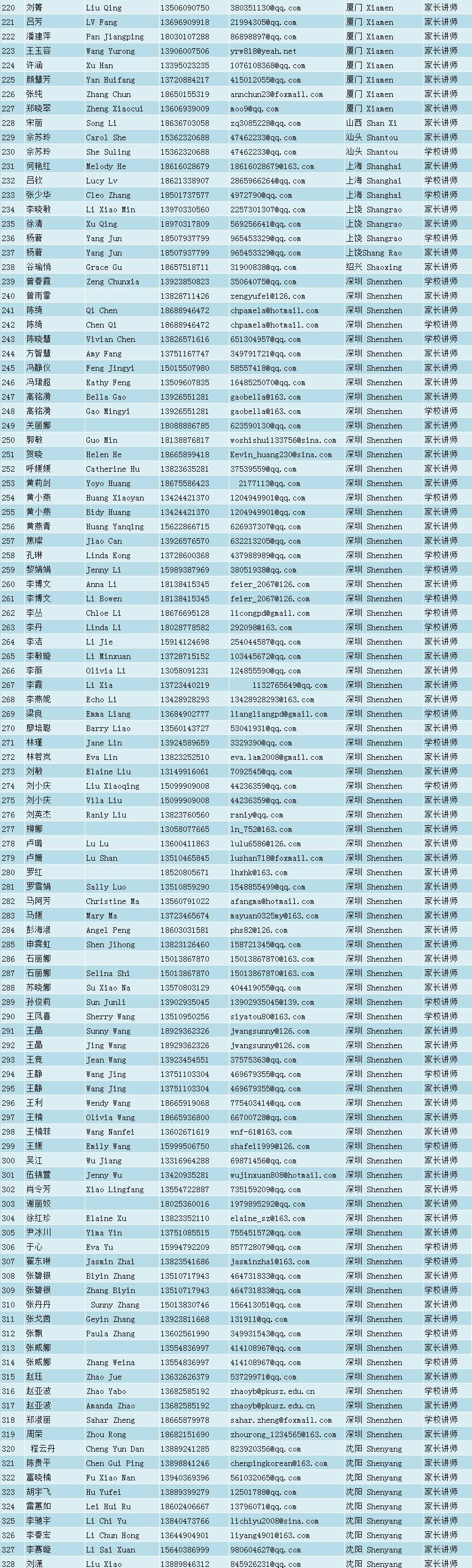 本次名单更新,新增2016年1月深圳家长讲师班资质讲师,导师为李丛。