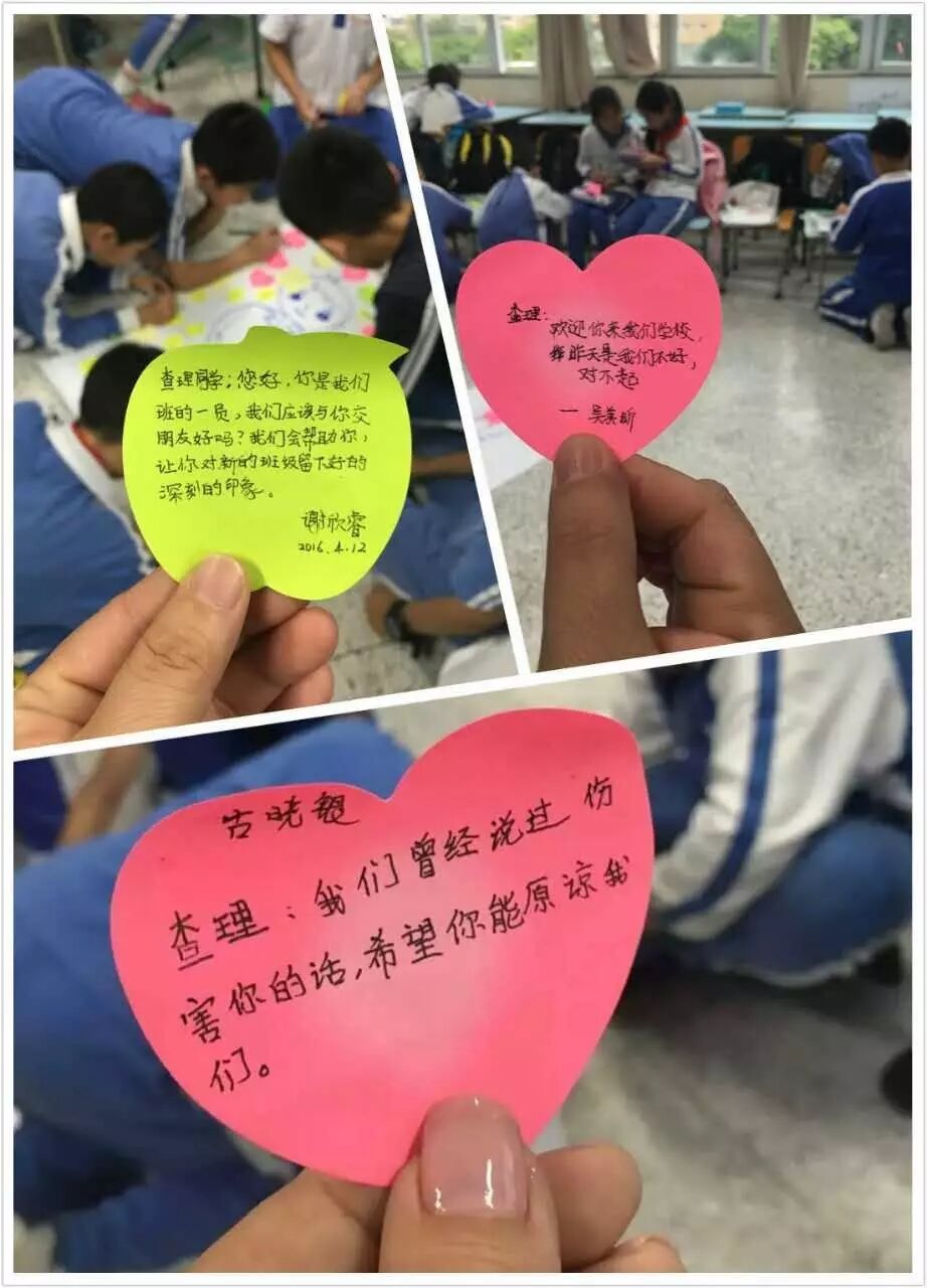 当孩子们意识到不尊重的言论对他人的影响后,他们懂得用尊重、友好的方式去和“可能不受欢迎的孩子”交流,看看孩子们写的话,真是让人感动。