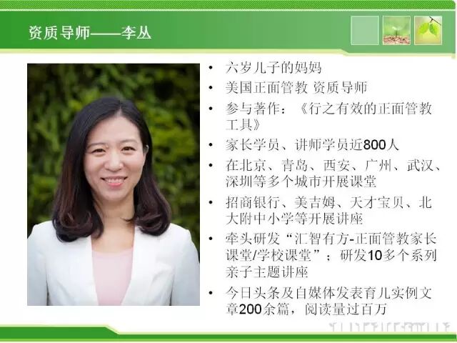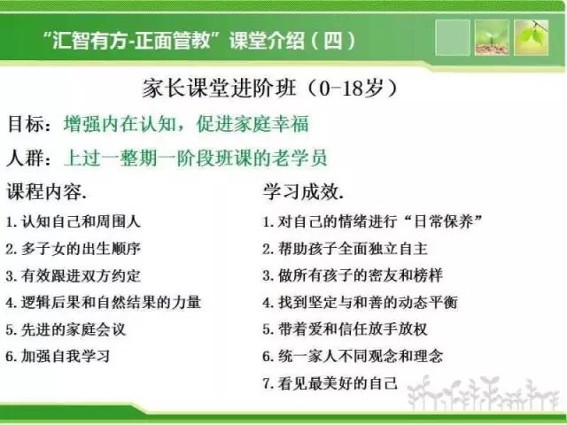 (5) 完成“汇智有方”家长班两个阶段并符合报名条件的学员,报名资质讲师班时优先考虑。
