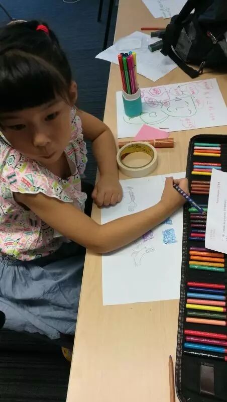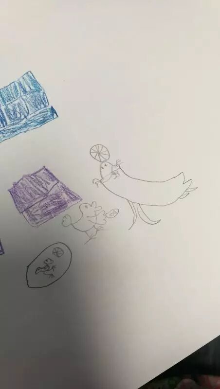 拖个小尾巴来上课,老师课堂布置作业:画个海报。妞儿过一会儿说:妈!我画完了!看!海豹