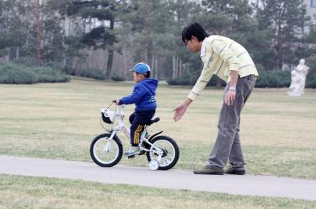 我们无法通过说教让孩子学会怎么保持自行车的平衡,他只能从实际经验中学习。我们给车子加训练轮可以帮助孩子,但是掌握平衡技术的是孩子自己。所以,在任何需要尊重秩序和规律的领域,孩子都需要从实践和经验中学习----从行为中,而不是从语言中学习。就像我们会安装自行车训练轮,但是当他们掌握以后,我们会把训练轮卸掉。这就是我们给予孩子合适的训练。