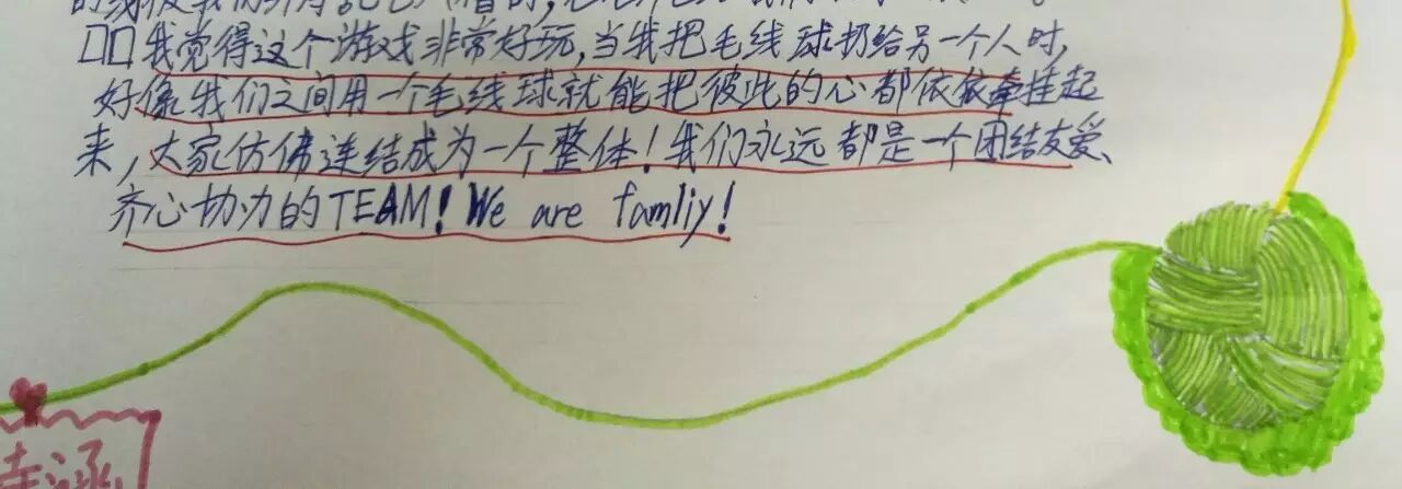 3“正面管教”活动之三:《毛线团》当我们抛出线团,当线网织起,毛线将我们连接在一起,我们深深感受到:we are 伐木累。我们总是有着这样那样的relationship,我们彼此感恩,我们同心协力!