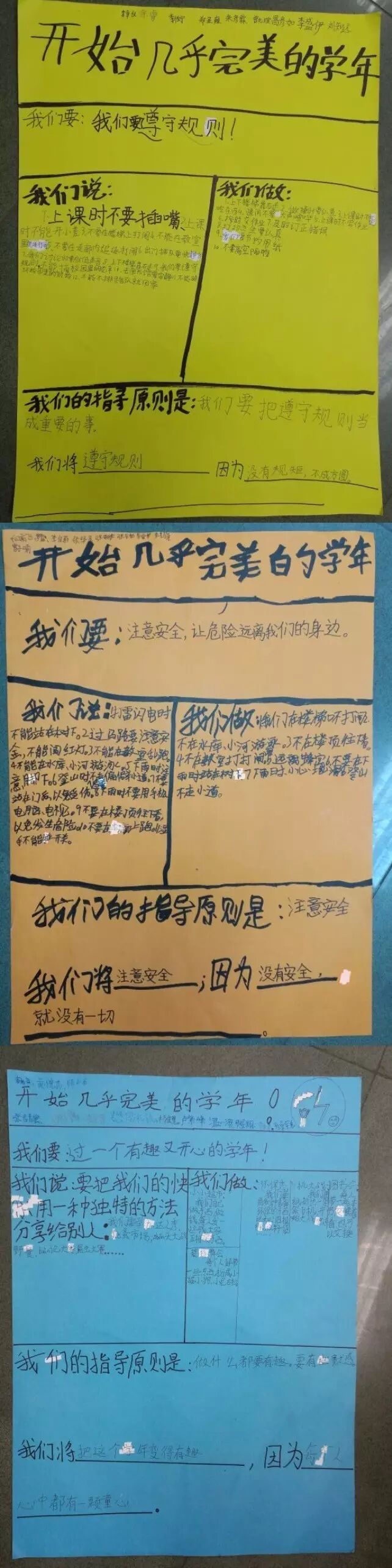 每个小组都上台分享了“开始几乎完美的学年”的具体建议,每一个孩子都给出了自己的评价,还在纸上签名。现在,这个学年,学习生活的“地图”已经“在手”,开始几乎完美的学年,我们起航!