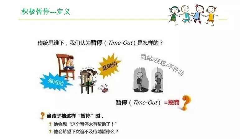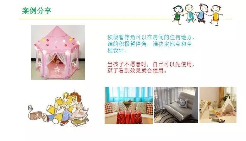 如果当时孩子们选择自己去他的特别的地方,一个他布置的地方,一个让她心情好起来的地方,就会更加有效,大部分的父母不知道有其他有效的方式可以代替惩罚。