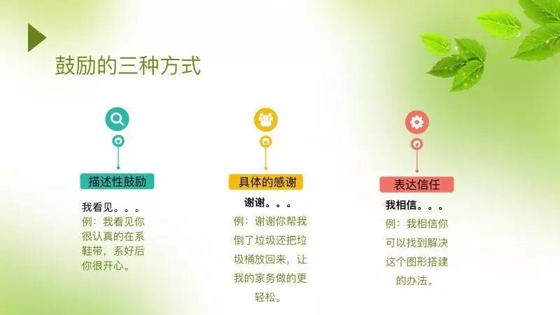 一、我看见,描述性鼓励。例如,我看见你很认真的在系鞋带,系好很开心。