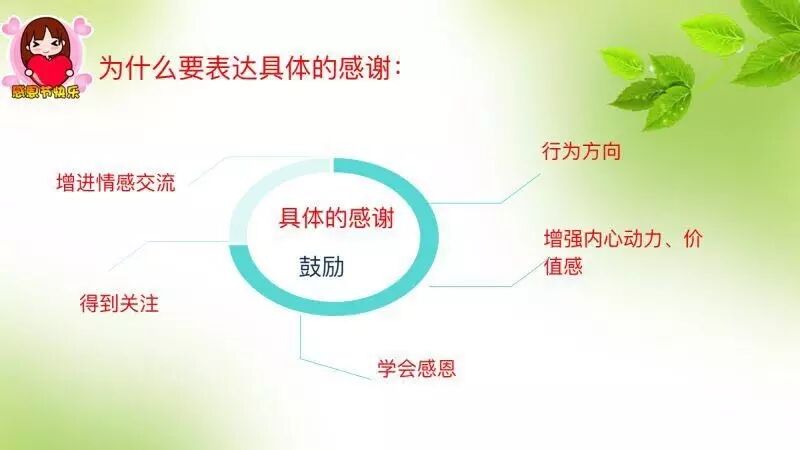 二、具体的感谢,那我们有的时候会说,谢谢你帮我倒垃圾,还把垃圾桶放回来,让我做家务做的更轻松了。