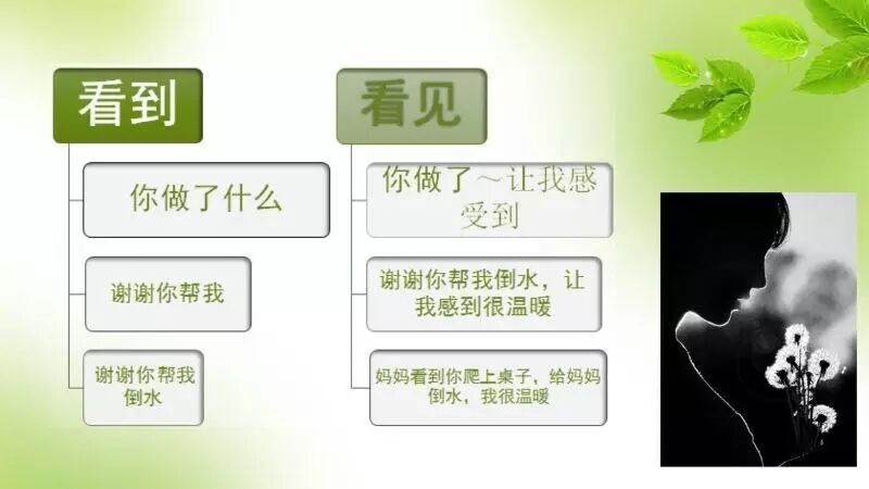 第一,是家庭会议,在家庭会议中我们有一项叫致谢,在这个环节,我们家刚刚开始的时候就会遇到不知道说什么,那可能就会说谢谢妈妈的付出啊妈妈辛苦了,或者会把致谢变成一种期望。
