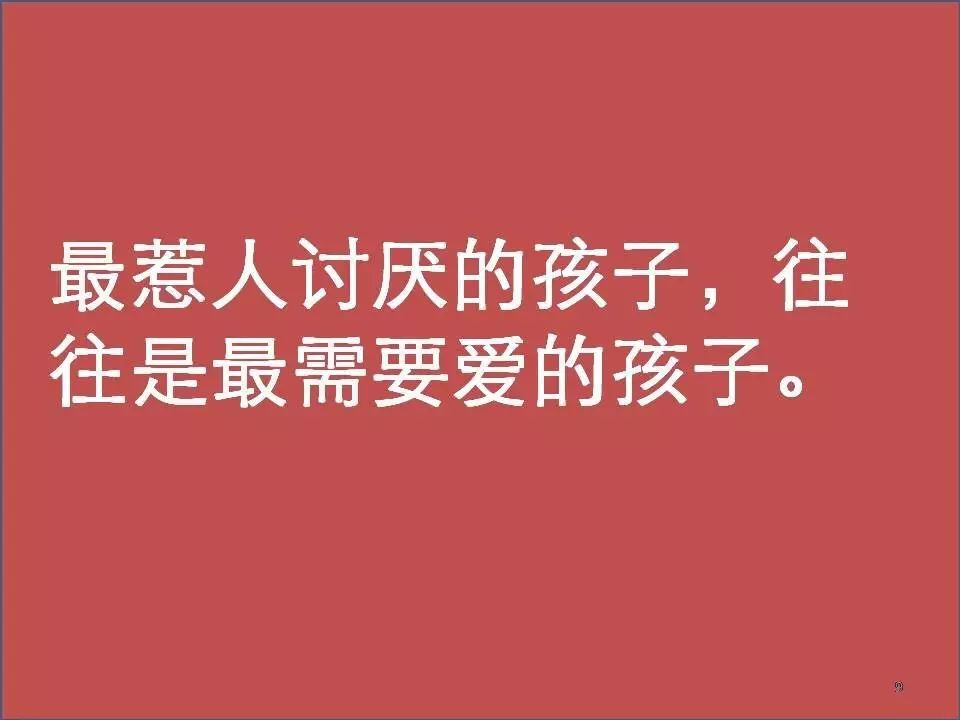 当我们知道孩子做出不当行为只是因为他对自己有没有价值、有没有被爱产生怀疑或者没有信心的话,那我们就知道,其实这样的一个不当行为的孩子,他最想说的就是:我是个孩子,我需要爱,需要归属感。