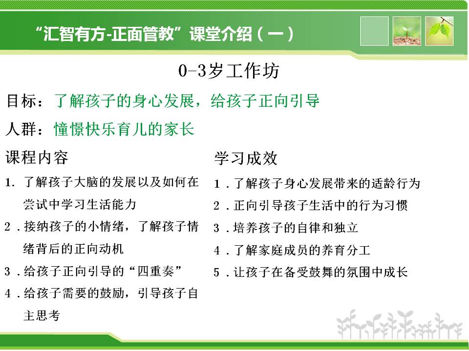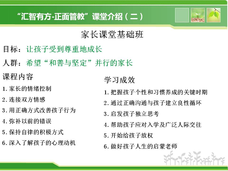 事实证明,家长们不但从“正面管教课堂”学到易学实用的方法,解决从孩子睡觉吃饭、作业家务等,到与家长对抗、轻易放弃等挑战,还能帮助长家找到引导孩子自信,自律,拥有强大内心力量的成长途径。