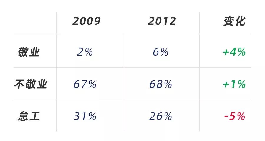 盖洛普全球调研报告显示,2012年中国员工的敬业度平均只有6%,落后于全球平均值!