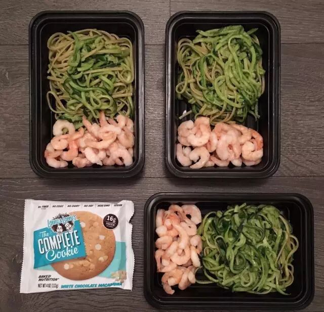 周三:全麦意面和西葫芦面配自制香蒜酱,水煮虾。
