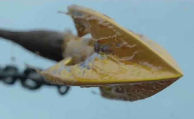 为了捕获一头活着的饕餮,为刘德华饰演的军师科学研究之用,马呆萌动用了老家惯用的捕鲸大法——钩子插在鲸鱼的身上,拖拽到岸上。