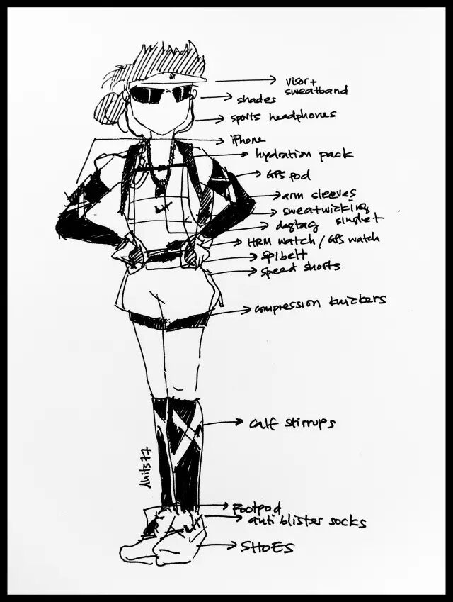 你也没有必要买双以极简主义著称的五指鞋,来追求这种很强的形式感(当然如果你喜欢这并不妨碍)。普通的跑鞋即可,只是,不要再在“T恤 短裤”上面添加任何不必要的累赘。很多跑者为了追求极强的形式感,脚上是穿了双五指鞋,身上却是一层又一层......到底为哪样?