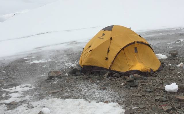 “如果是这个节奏的话,别说登顶了,就算卷起帐蓬下撤到大本营都很困难。”我心想。是的,现在的情况是进退维谷,上不能攻顶,下不能撤退,风雪太大,我们被困在一号营地了。