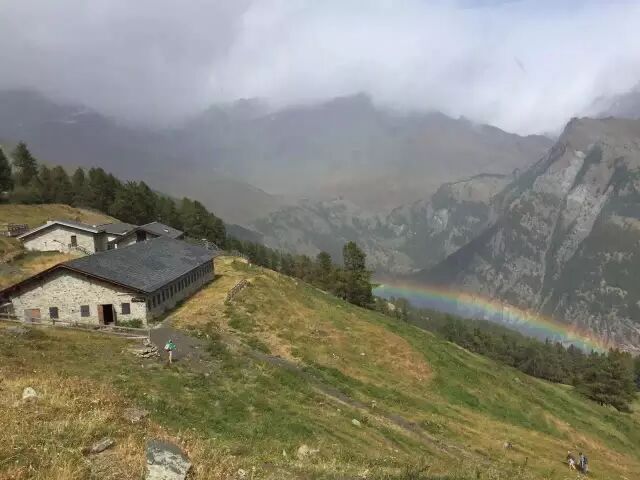 最奇葩的一次,我沿着赛道溯洄,走了10公里,爬升1000米,抵达海拔2700处的垭口,期间狂风暴雨,各种姿态的彩虹出现在我身边直达麻木,才抵达既定目标,一处Refuge(救援小屋)。