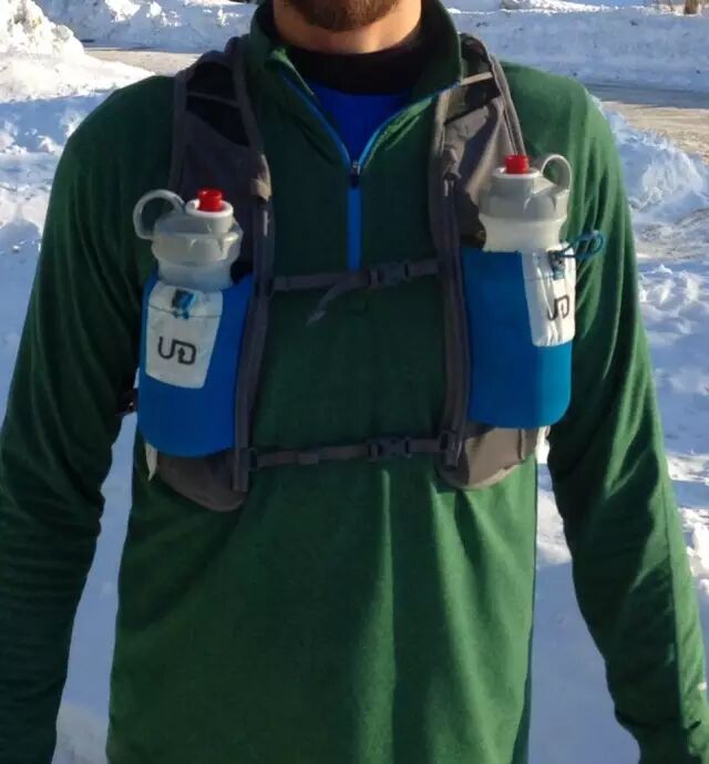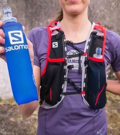 可是前置水壶毕竟太硬,除非你胸肌过硬,否则长距离下来真的很不爽。于是各个品牌也开始各显神通的改造前置的水壶。像Salomon把硬水壶改成了前置软水壶,像Ultraspire把圆通型的硬水壶改成了更加贴胸的扁水壶。都是不错的尝试。