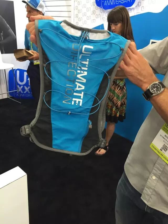 所以在今年的ISPO上面,勇气君见到了新款的Nathan产品,算是比较完美地解决了这个问题,即在软水壶里加了支撑条和硬底儿!大大提高了把前置软水袋塞进去的效率。另外国产耐力运动品牌Ultra Gear也有类似带有支撑条的前置软水袋产品。