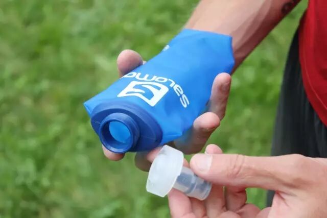 先说传统的水袋式。优点很明显,跑动过程中饮水方便,低头一吮即可。缺点更明显,在补给站的时候补水非常不方便,需要脱掉背包,拉出水袋,打开水袋口,灌满水后在塞进去。另外,背在后面的水袋引水量无法目测,只能估计。